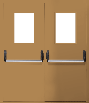 Двупольная противопожарная дверь «Антипаника» со стеклом EI 60 (RAL 8000)