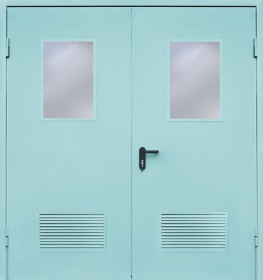 Двупольная противопожарная дверь с вентиляцией и стеклом EI 60 (RAL 7043)