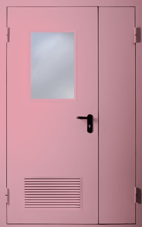 Полуторапольная противопожарная дверь с вентиляцией и стеклом EI 60 (RAL 3015)