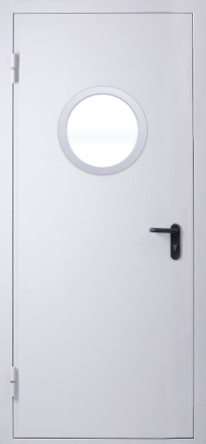 Однопольная дымогазонепроницаемая противопожарная дверь с круглым стеклом EIS 60 07